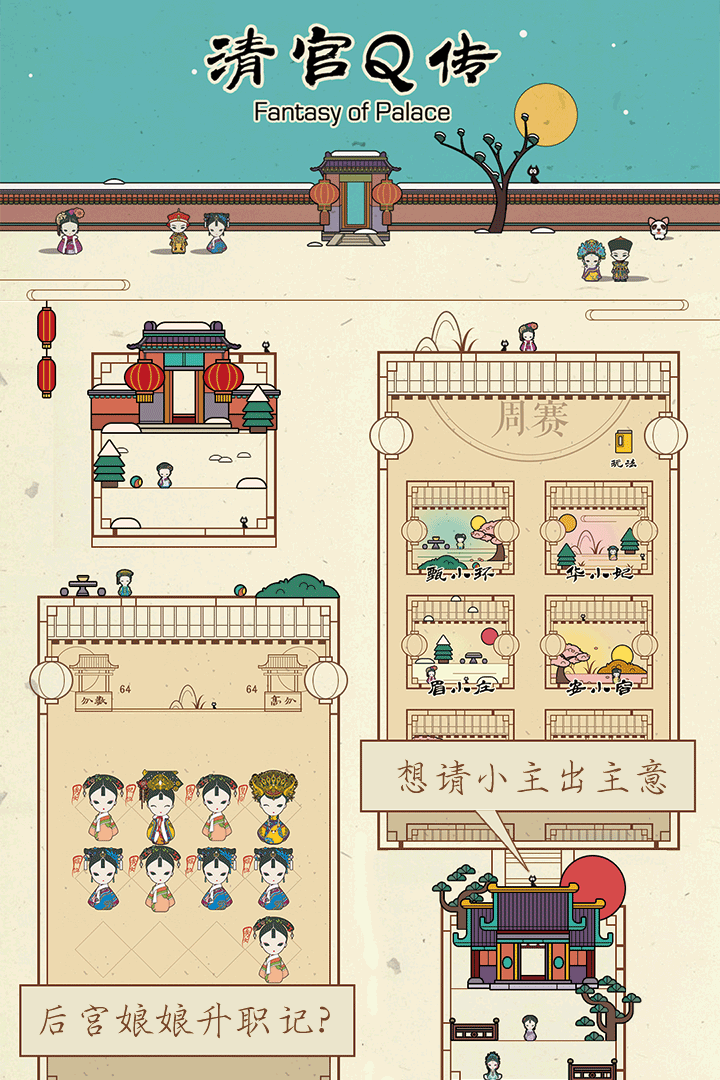 3.精美的游戏画面:Q版角色设计与古色古香的宫廷场景,给玩家带来视觉上的盛宴。