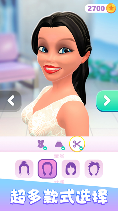 玩家需从零开始经营婚庆公司,日常任务涵盖婚纱设计、发型妆容搭配、婚礼场地布置等环节。通过完成订单赚取金币后可解锁高级礼服材质与装饰元素,甚至在不同城市搭建专属婚礼场景。游戏特别强调细节定制,例如调整婚纱下摆长度、设计渐变染色效果,或为新人宠物搭配装饰。随着等级提升,会逐步开放跑酷挑战、美甲制作等支线玩法,其中跑酷模式需收集发量并躲避剪刀障碍,而美甲玩法提供超过300种贴纸与宝石素材。