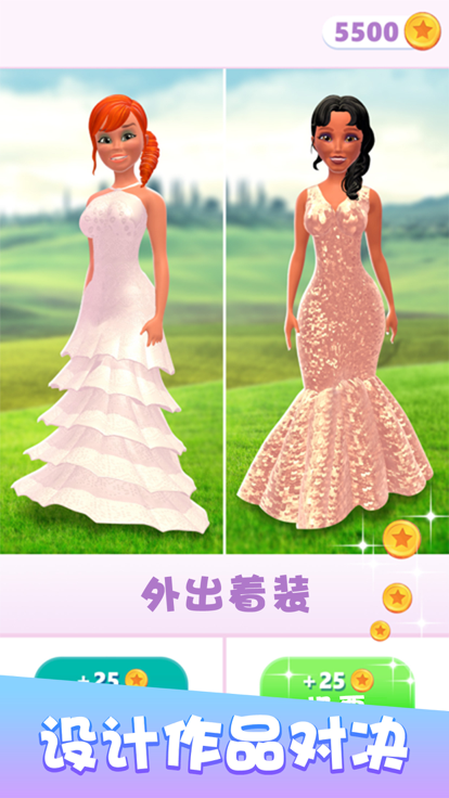 游戏提供超过200种基础礼服模板,支持自由调整材质反光度、花纹密度等参数实现深度定制。独创的公主进化机制使角色形象随任务推进产生变化,初始阶段的柔美公主最终可蜕变为气场强大的女王形态。社交系统支持作品分享与赛事参与,玩家既能将设计的婚纱发布至虚拟社交平台吸引NPC贵宾,也能参加每周主题的美甲设计大赛。场景搭建采用模块化设计,可自由组合喷泉、花廊等300余种建筑元件。