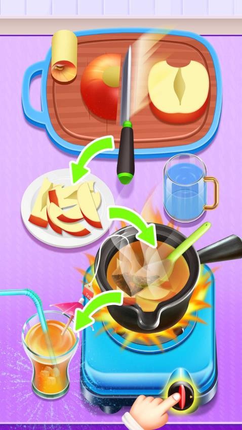最让人上瘾的是自由DIY系统!水果混搭完全没限制,榴莲蓝莓披萨这种黑暗料理也能尝试,成功后还能拍照分享到社区。厨房工具超齐全,从雕花模具到分子料理喷枪都有,切水果时的汁水飞溅特效超真实。员工们超可爱,戴厨师帽的企鹅会颠勺,柴犬服务员端盘子时尾巴摇得像螺旋桨。还有隐藏剧情线——修复破旧食谱书解锁失传的星空果冻,连NPC吃了都会跳星星眼舞蹈。