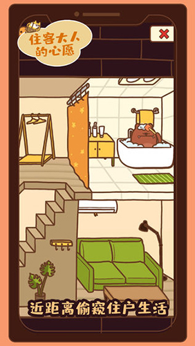 住客大人的心愿是一款融合多元素的公寓模拟经营手游,玩家将化身公寓老板,与小猫咪店员们共同经营公寓,服务一群挑剔的住客并满足他们的心愿。游戏背景设定在一个由象神创造的奇幻世界,因一次意外导致小猫无家可归,玩家需要帮助这些小猫经营公寓并实现住客们的心愿。游戏采用卡通二次元画风,整体氛围温馨治愈,玩法上结合了装修、烹饪、种地及招揽住客等经典经营类元素,同时融入丰富的社交互动和个性化剧情。