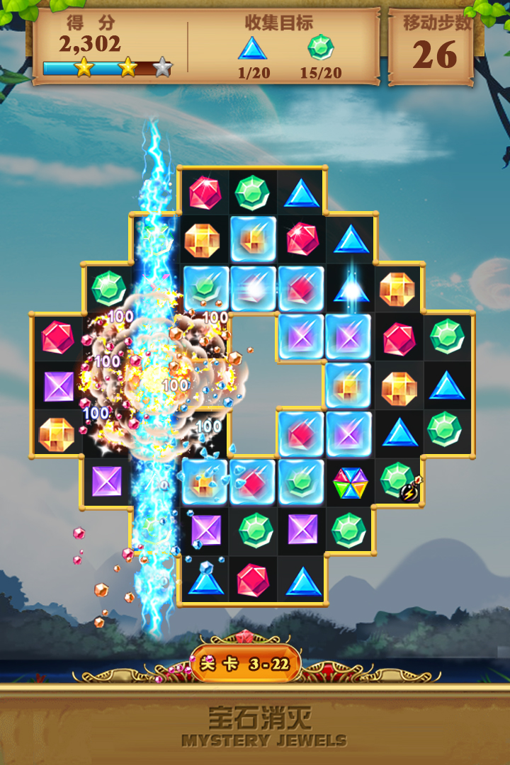 在这款游戏中,玩家会进入一个由各种宝石组成的棋盘世界。游戏的基本玩法是将三个或三个以上相同颜色的宝石连成一线,无论是横向还是纵向,只要满足条件,这些宝石就会被消除。游戏的进行,关卡难度会逐渐增加,新的挑战也会不断出现。有些关卡会设定时间限制,玩家需要在规定时间内完成一定数量的消除任务;还有些关卡会出现特殊的宝石,这些宝石具有独特的消除效果,玩家需要巧妙地运用它们来达到更高的分数。游戏还设置了丰富多样的道具,玩家可以在关键时刻使用道具来帮助自己顺利通过关卡。道具的种类包括炸弹、闪电等,每种道具都有其独特的功能和使用方式。