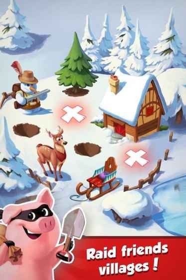 最吸引人的要数那个充满魔性的老虎机系统,每次旋转都可能带来不同惊喜。除了直接获得金币奖励,还可能抽到金袋、护盾或是突袭机会,这些道具都能帮助更好地建设家园。收集卡片系统也很有趣味性,每套完整卡组都能带领前往新的冒险地点。与好友互动的设计特别有意思,既可以去好友家串门获取资源,也要小心防范别人来自己家做客。在不同季节还会推出限定主题场景,让每次登录都有新鲜感。