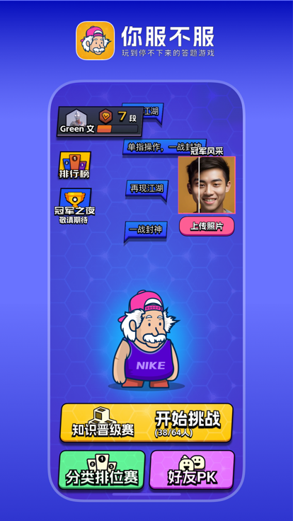 你服不服是一款充满创意和挑战的答题闯关小游戏,以亮丽的画面场景和趣味性关卡任务为主要特点。在这款应用中,大家需要通过灵活的操作完成各种任务,每一关都有不同的场景变化,还有丰富的剧情故事穿插其中。加入这场答题挑战赛,解锁更多题目资源,涵盖电影、明星、动漫、游戏、小说等多个主题,让知识和娱乐完美结合,真正做到劳逸结合。清晰简洁的画面设计加上丰富的玩法模式,为大家带来极佳的游戏体验,无论你是新手还是老手,都能找到属于自己的乐趣和挑战。