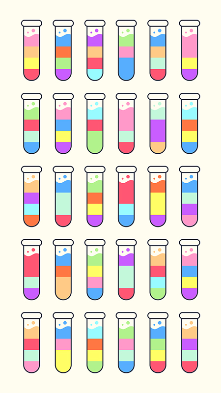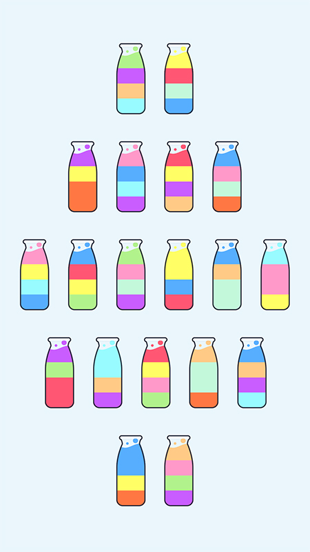 在具体的玩法上,每次挑战开始时,使用者会面对一系列装有不同颜色液体的试管或瓶子。操作的核心规则是倾倒,即将一个瓶子里的液体倒入另一个瓶子中。这一过程受限于几个关键规则:只有颜色相同的液体才能直接混合;每次只能倾倒一个瓶子的液体;并且目标瓶子需要有足够的剩余空间容纳倒入的液体。使用者需要规划倾倒的顺序和路径,用最少的步数或在限定的步数内完成所有液体的归位。游戏关卡丰富多样,从简单的几个瓶子开始,逐渐增加瓶子的数量和颜色的种类。部分关卡会设计成神秘模式,即瓶内底层液体的颜色被隐藏,只有在倒出上层液体后才能发现,这极大地增加了规划的难度和不确定性,考验使用者的前瞻性思考。游戏内置了回溯功能,允许撤销最近几步操作,为策略尝试提供了容错空间。通过关卡后,通常会获得奖励,可用于解锁新的瓶子外观或皮肤,增加持续游玩的动力。