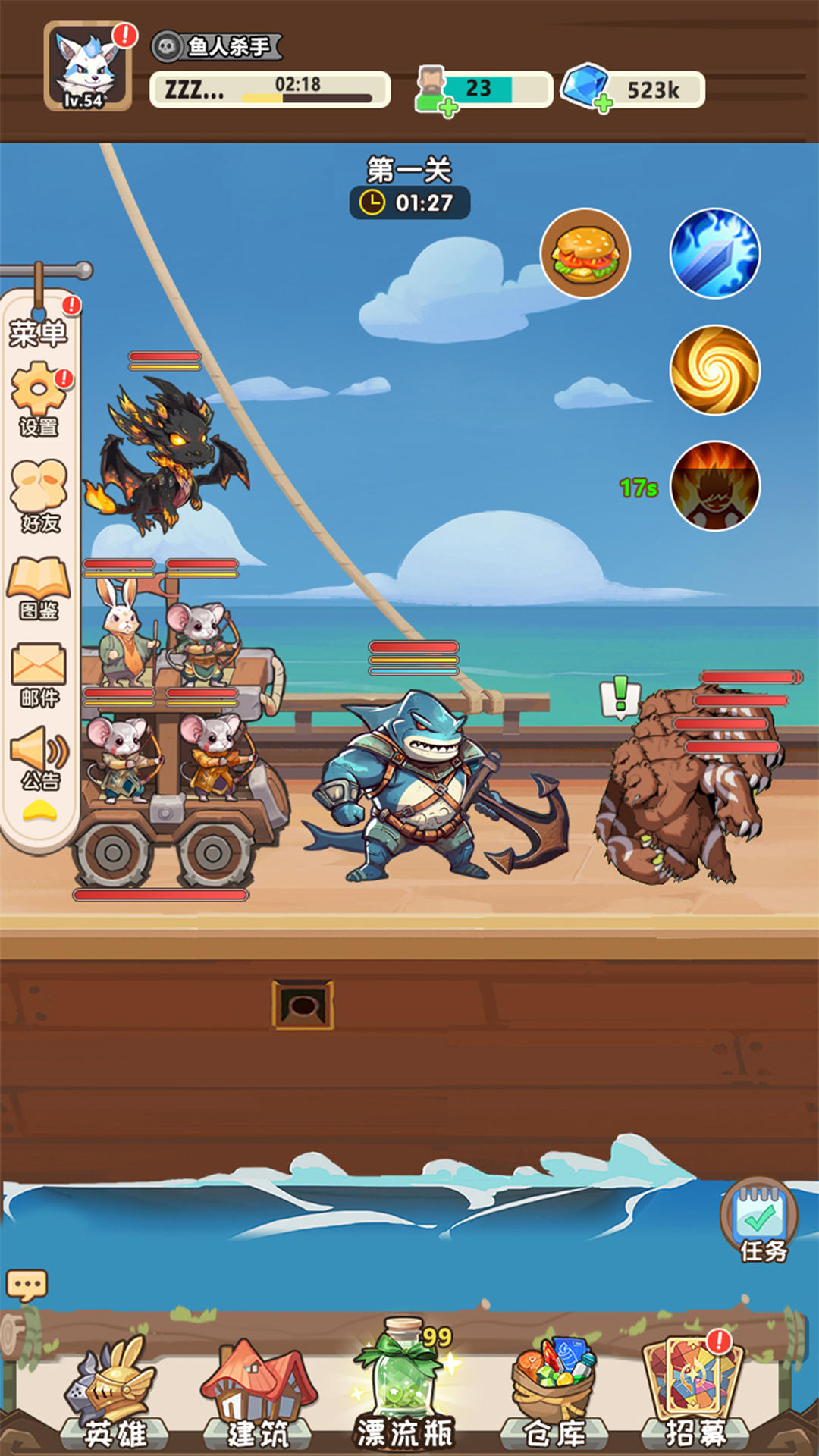 画风与视听体验绝对是精灵塔塔的一大加分项。整体采用Q萌精致的3D卡通风格,从圆滚滚的冰霜精灵到头顶小火苗的烈焰兽,每个角色设计都生动可爱,场景从森林到洞窟也都充满了童话般的细节。战斗特效华丽而不浮夸,大招释放时有震撼的全屏动画,配合精心设计的音效,比如海浪声和暴风雨的雷鸣,营造出极强的沉浸感。 玩法设计上,夺回方舟并逐步扩大领地的设定带来了持续的成就感。关卡设计由浅入深,前期帮助熟悉机制,后期则考验极限操作与策略,Boss战还配有专属的剧情动画,丝毫不会感到枯燥。游戏定期更新主题活动和限时副本,如方舟保卫战或精灵嘉年华,总能带来新的挑战和专属奖励。 对体验的优化也值得一提。操作界面简洁直观,自动战斗和手动模式可以自由切换,并有贴心的倍速功能,无论是想轻松休闲还是追求手动微操的高分,都能找到适合自己的节奏。