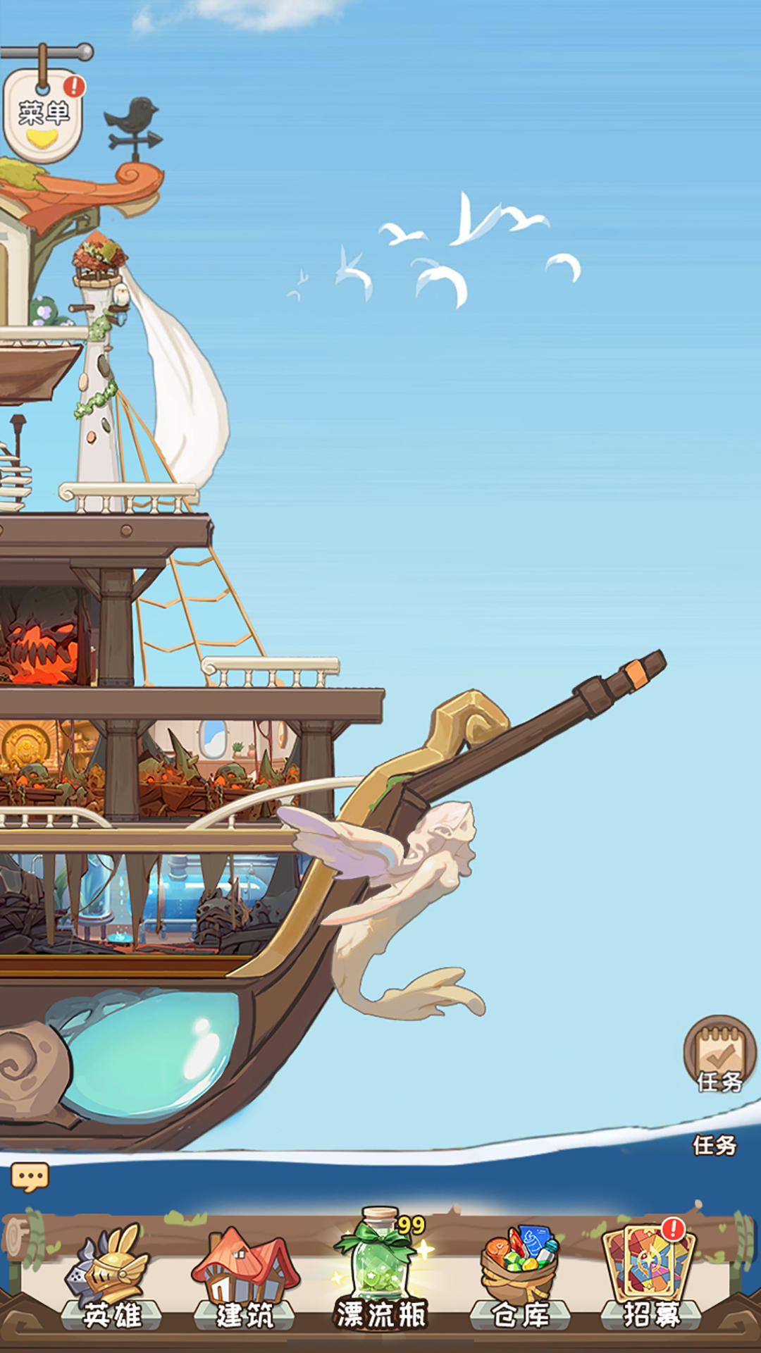 精灵塔塔是一款休闲模拟经营加卡牌养成的手机游戏,带我们进入一个洪水后的奇幻世界。在故事里,我们化身为英雄,带领幸存者们在一艘漂荡于汪洋大海的方舟上安家。每当暴风雨过境,可恶的怪物们就会重新冒出来占领方舟的部分区域,这时候就需要我们勇敢地走出庇护点,去重新夺回控制权,并且前往那些未被洪水吞没的陆地,解救更多的伙伴。整个背景设定既有童话般的想象,又带着一丝重建家园的使命感,很容易让人沉浸其中。