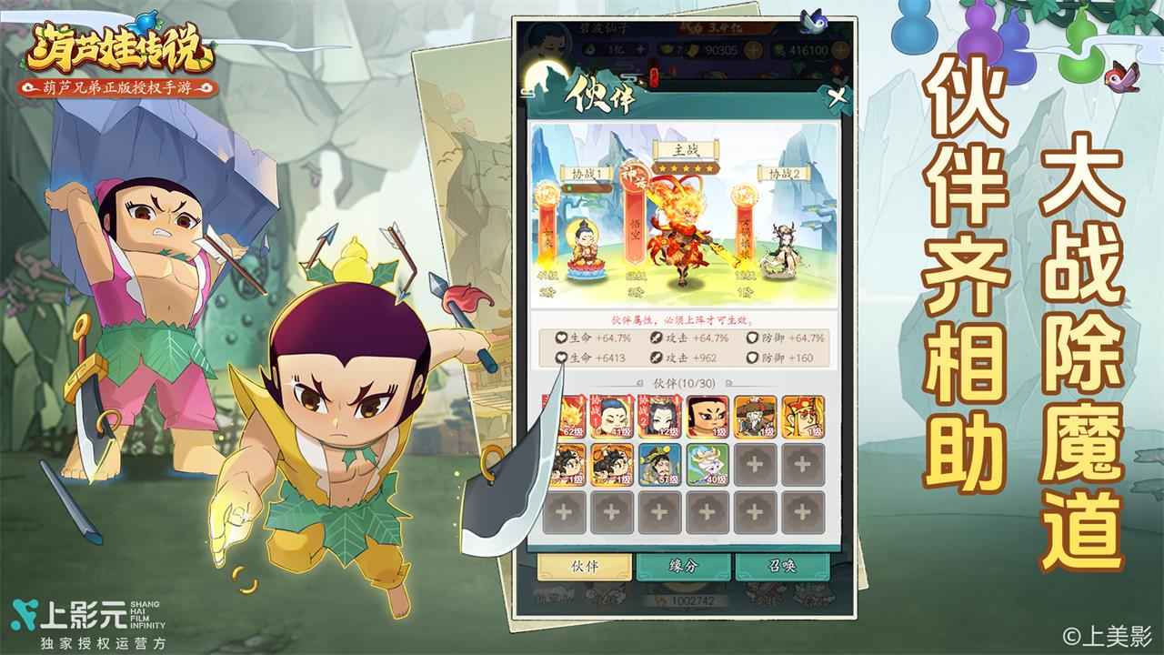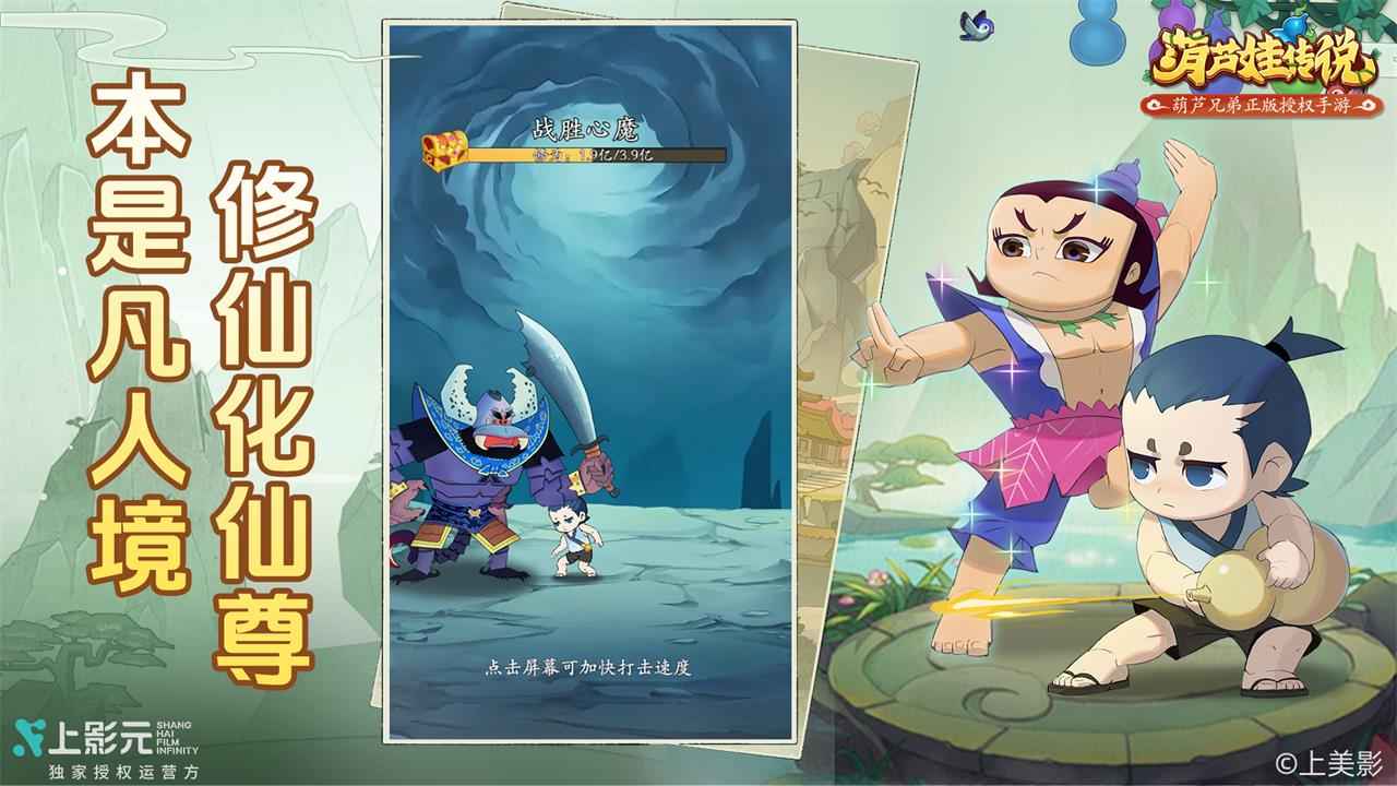 葫芦娃传说是一款由上海美术电影制片厂正版授权的休闲挂机放置手游,巧妙融合了开箱新玩法,带我们重温那段经典的童年动画回忆。我们的故事始于一个神秘的葫芦,即使离线也能自动积累经验与奖励,让升级变得轻松自在。背景设定在古老的村庄中,七个葫芦娃兄弟各自拥有独特能力,从力大无穷到吐水喷火,他们团结协作,与妖魔鬼怪展开激烈对抗,守护家园的和平。这款作品不仅还原了原汁原味的动画情节,还加入了现代游戏元素,让我们的冒险之旅充满惊喜与感动,仿佛重回那个充满勇气和友爱的年代。