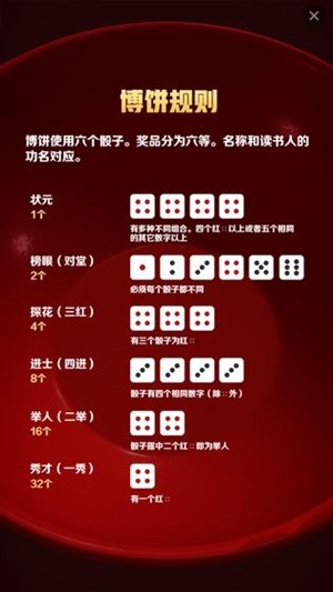 2.中秋博饼游戏以其独特的魅力,不仅成功地将传统节日习俗传承下来,还通过互动、学习和分享,加强了人们对中秋文化的认识和热爱。无论你是寻找一款家庭聚会的游戏,还是对中国传统文化感兴趣,这款游戏都将是你的不二选择。