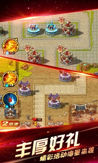 2.多样的策略选择:游戏提供多种不同的防御塔和特殊技能供玩家选择使用,不同的组合可以产生不同的战斗效果,考验玩家的策略规划能力。