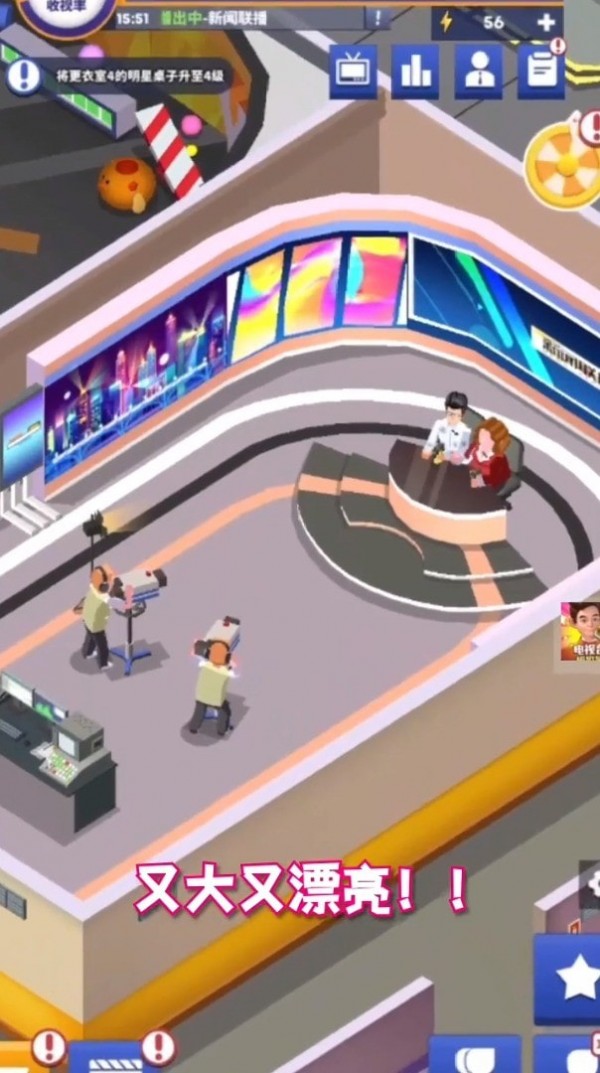 1.细腻的画风设计:游戏以其精美的画风和布局吸引玩家眼球,不管是电视台的内部设计还是角色造型,都极富细节和生活气息。