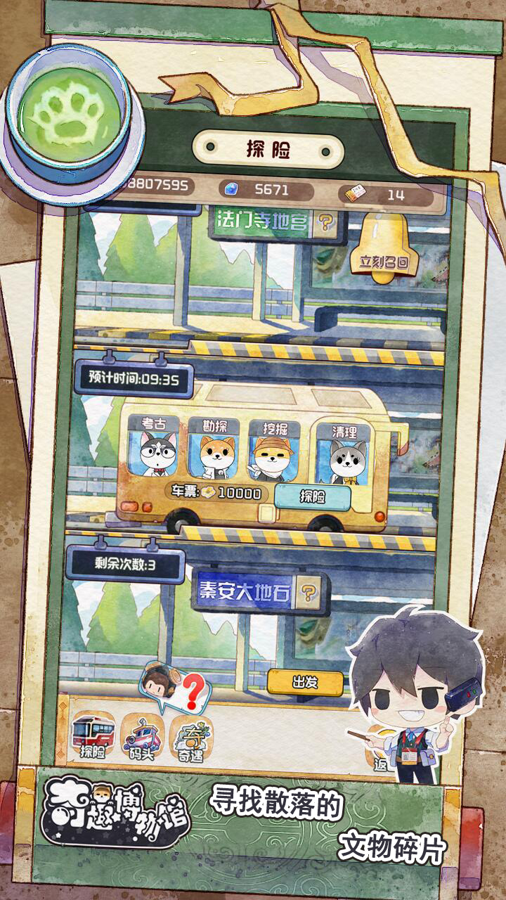 探险玩法设计得很巧妙,派遣狗狗队外出考古时会触发隐藏副本和小游戏,带回的文物碎片需要鹿精灵鉴定修复。鬼市淘货超刺激,要从三件相似古董中慧眼识真品。签到和盲盒活动经常送出稀有文物碎片,天地级文物青铜神树通过开通超级馆长即可获得。离线收益系统很贴心,布置好售票猫和检票猫就能自动积累资源,回来时还能领取游客留下的花朵和钻石奖励。