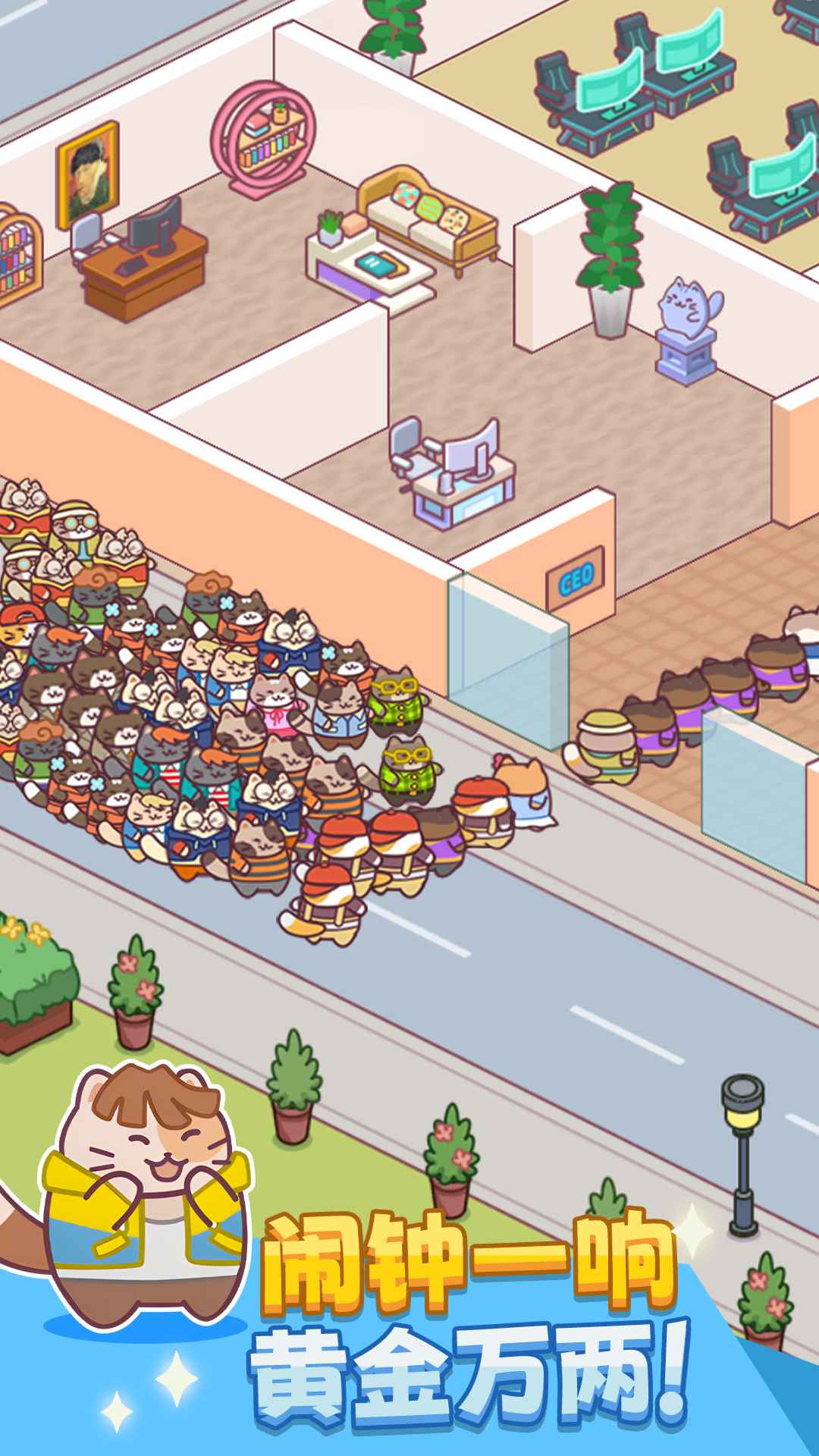 其主题设计极具辨识度与亲和力,将以猫咪作为核心员工的概念贯穿始终。众多卡通猫咪形象软萌可爱,拥有各自独特的外观,在工作或互动时会展现出甩尾巴、蹭屏幕等生动动作,能有效缓解压力,营造出充满治愈氛围的虚拟世界。在操作层面实现了高度自动化,管理者从繁重的重复劳动中解放出来,核心职责集中于战略规划、人员招募与设施升级,真正实现了躺着赚钱的构想。其模拟经营体系构建得较为完整,允许从一家小型初创团队起步,通过资源积累与合理规划,逐步扩建场地、收购建筑、扩张商业版图,体验将企业打造成高效生产帝国的完整成长旅程。