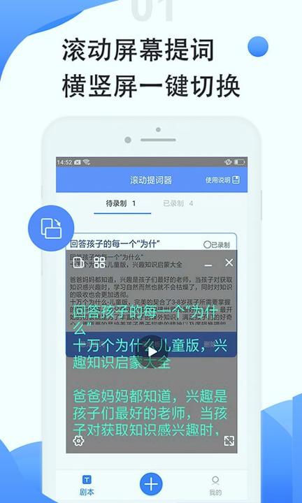 滚动提词器是一款短视频创作者必备的直播神器,专为解决录制视频、直播演讲过程中的忘词困扰而设计。通过提前录入稿件并设置为悬浮窗或提词板模式,该工具能够实现讲话内容与稿件的实时同步,支持横竖屏一键切换适应多种场景需求,其智能悬浮窗提示功能可覆盖不同应用界面,让表达过程更加流畅自然。