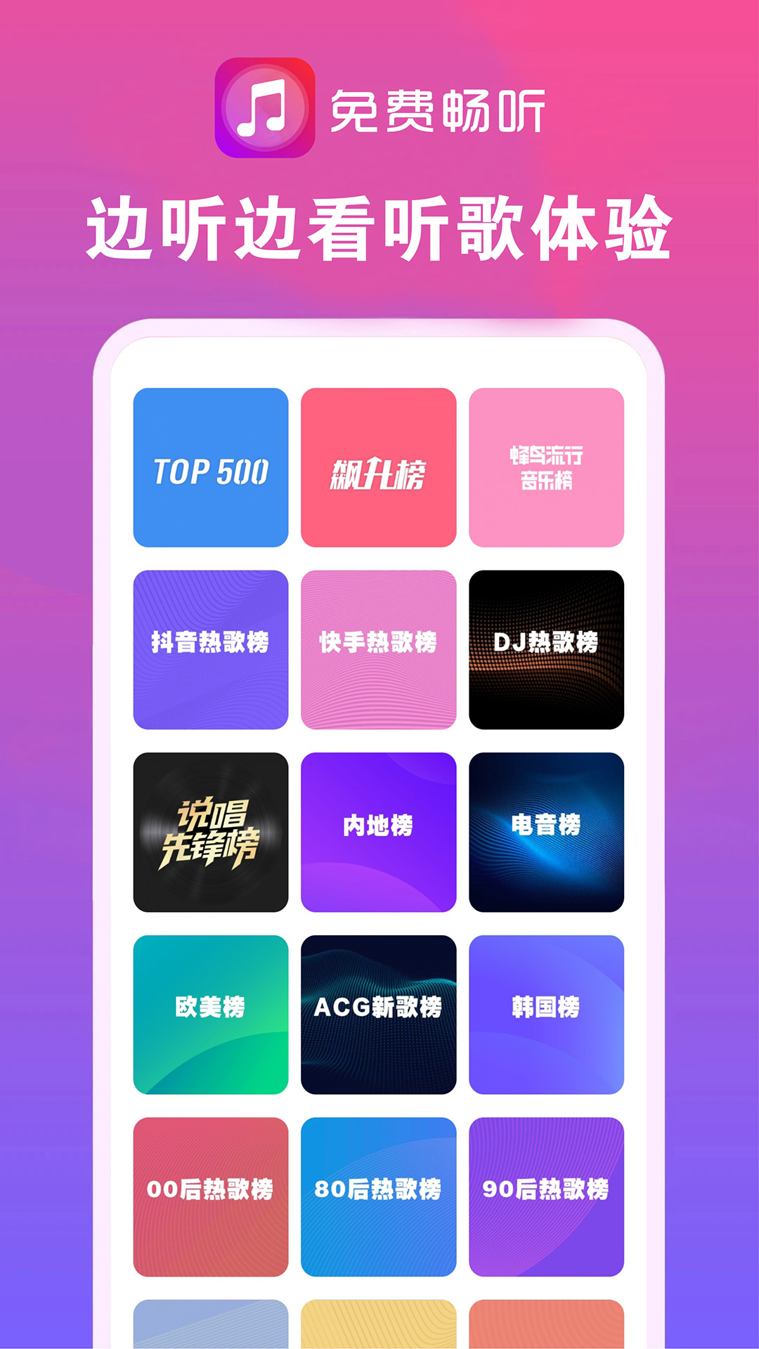 畅听音乐大全是一款集音乐搜索、在线播放、离线缓存与个性化推荐于一体的综合性音乐播放应用。打破传统音乐平台的壁垒,汇聚海量高品质音乐资源,涵盖流行、摇滚、古典、民谣、电音、古风、动漫、说唱、DJ以及怀旧金曲等几乎所有歌曲类型,为用户带来一站式、免费畅享的音乐聆听体验。其设计核心理念是回归音乐本质,通过人性化的界面与强大的功能,满足不同场景下对音乐的需求,让音乐真正融入到生活的每时每刻,是音乐爱好者的理想之选。该应用拥有庞大的曲库,不仅紧跟时下热门潮流,也兼顾经典老歌的收藏,确保满足从年轻群体到成熟听众的多元化喜好。其无需付费即可畅听海量音乐的核心特性,使得听歌不再受限于版权分割,为用户打开了广阔的音乐世界。凭借简洁的操作流程与稳定的播放性能,提供了从搜索到播放的无缝体验,致力于让每一次点击都能迅速连接到心仪的旋律。