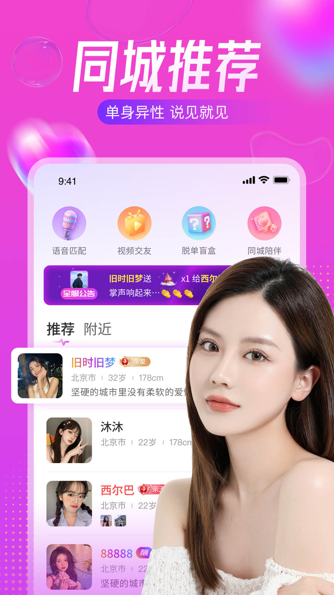 附近陌遇是一款基于地理定位技术的同城社交服务平台,专注于为都市人群搭建真实可靠的交友桥梁。该平台通过多重身份验证机制确保参与者信息真实性,结合智能匹配算法与多样化互动场景,致力于解决现代人社交圈层狭窄的痛点。其核心价值在于打破传统社交壁垒,让陌生人在安全可控的环境中建立有意义的社交联系,目前已形成包含动态分享、即时通讯、线下约会在内的完整社交生态体系。