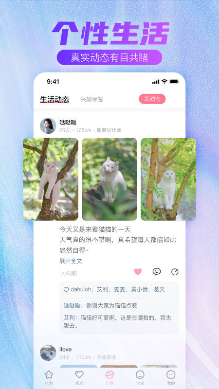 它拥有独特的缘分匹配系统,会根据大家的性格特点、兴趣爱好、价值观等多方面因素进行精准匹配,为大家找到最适合自己的另一半。软件还设有情感社区,大家可以分享自己的恋爱经历、交友心得,也可以向其他用户请教情感问题。社区里充满了温暖和正能量,大家可以在这里得到支持和鼓励,同时也能从他人的经验中学习到很多恋爱技巧和方法。软件还提供了私密保护功能,大家可以根据自己的需求设置个人资料的可见范围,保护自己的隐私安全。