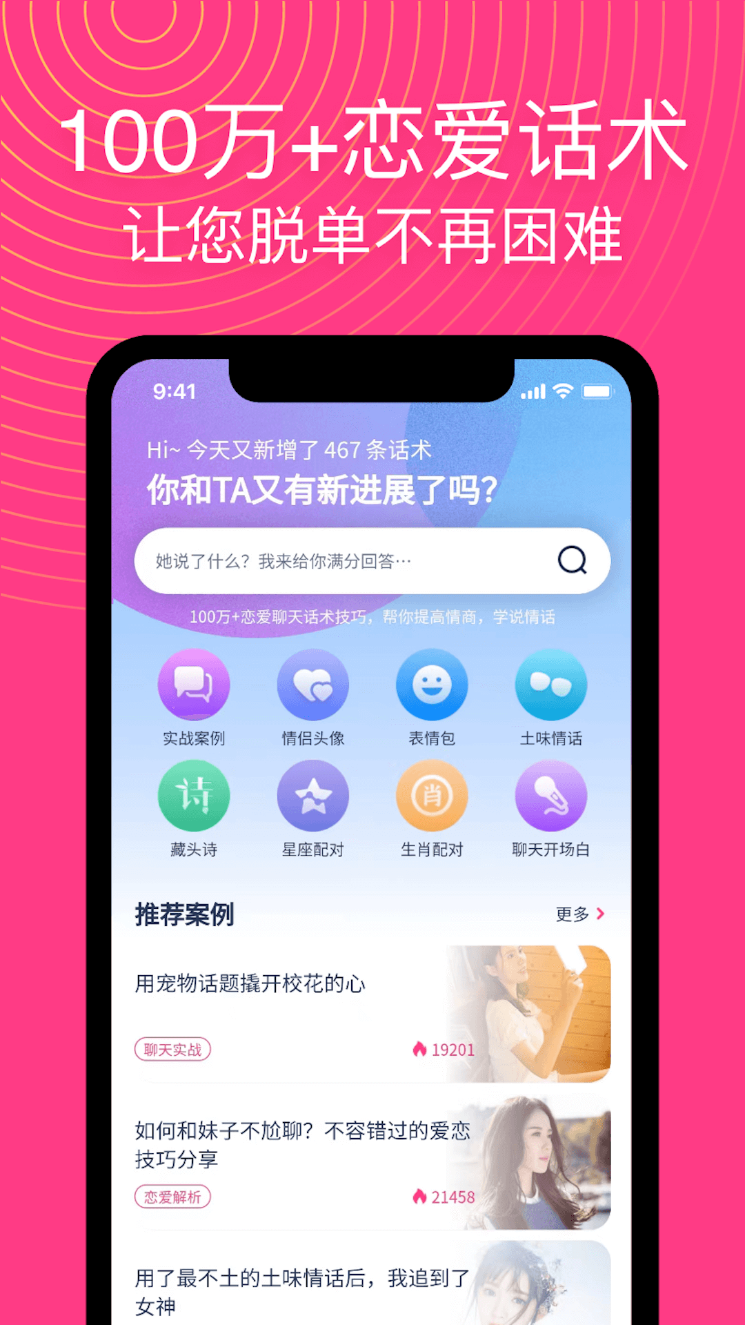 恋爱帮是一款专为想要甜蜜脱单或提升恋爱相处技巧的朋友们量身打造的情感助手类应用。它就像一个贴心的恋爱生活小秘书,帮助大家解决从搭讪聊天到长期关系维护中可能遇到的各种沟通难题,让每一段对话都变得更简单、有趣且充满魅力。