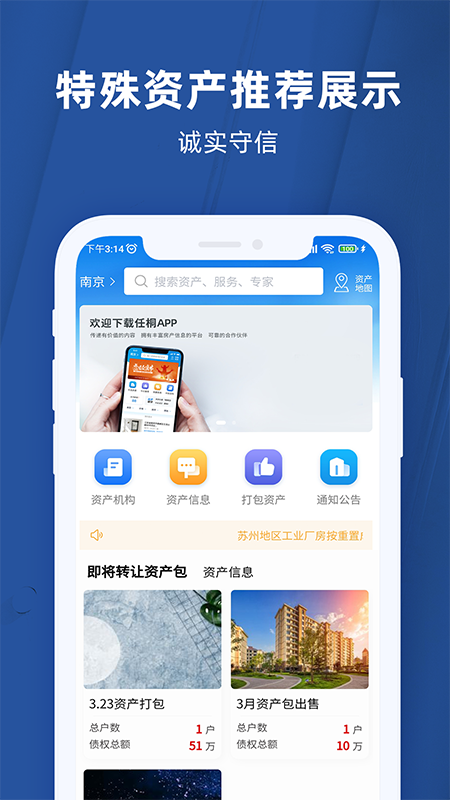 任桐资产平台是一款集财富管理、投资理财、资产配置为一体的综合性金融服务助手。它致力于通过智能化技术和大数据分析,为我们提供精准的资产管理建议和服务。平台专注于信息发布、资产展示、接受咨询、有效推荐、融资担保等全方位服务,帮助大家实现资产的增值目标。在发展道路上,它努力成为资产市场价值的参照表,践行公平交易原则,并充当实现交易的服务生。大家可以通过平台轻松进行资产发布、展示和推荐操作,享受便捷的金融支持体验。