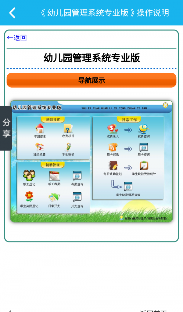 1.全面管理:涵盖幼儿园运营的各个方面,从教师到学生,从教学到财务,一应俱全。