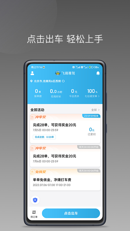 飞嘀尊驾是一款专为网约车司机设计的智能接单助手,它能帮助师傅们高效管理订单、提升收入,同时为乘客提供更优质的出行体验。这款软件整合了实时派单、导航、收入统计等功能,让师傅们可以随时随地轻松接单,操作简单易上手,无论是新手还是老司机都能快速适应。平台每天更新大量订单,确保师傅们有充足的接单机会,还能享受免佣金福利,让收入更透明更可观。