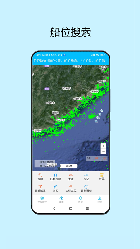 该软件通过整合全球3000座岸基AIS基站及79颗卫星数据,实现船舶位置精准定位与历史轨迹回放功能,同时提供海洋气象服务,包括台风预报、潮汐信息等关键数据。用户可自定义电子围栏监控区域,设置警戒线并接收越界报警,还能通过船岸互联通讯同步设备与视频信息。其特色功能如船舶群组管理、坐标测距、图层切换等,显著提升了船舶调度与资源分配的效率。