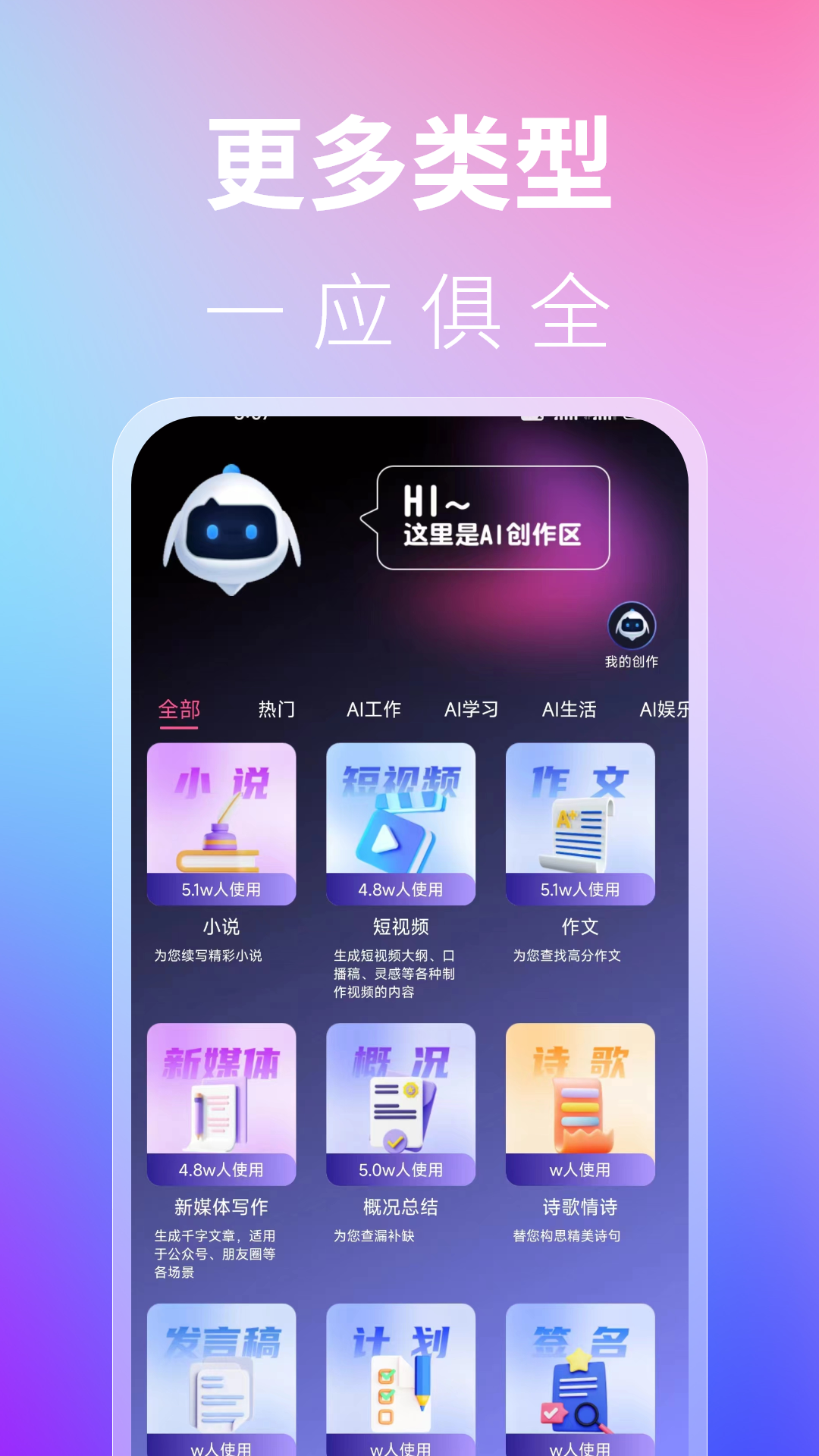 独特之处在于集成了多种实用功能于一身。除了基础写作,还包含AI对话、智能问答、文本续写扩写、长文本生成等特色功能。遇到创作瓶颈时,只需输入几个关键词,创作伙伴就能为咱们提供多角度写作思路,帮助开阔思维,激发新灵感。特别创作工具支持多语言创作和实时热点追踪,让创作内容始终保持新鲜感和时效性。