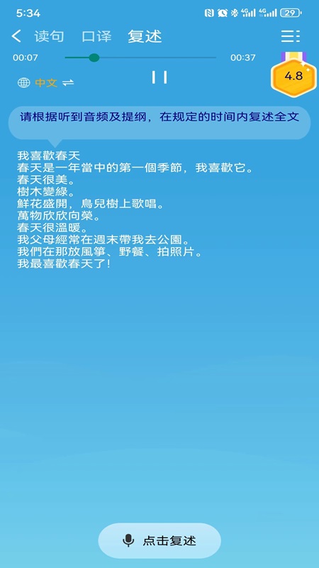 该工具提供覆盖英语、中文、法语及西班牙语、阿拉伯语等多类型语言的课程资源。学习者可根据自身水平切换学习阶段,获取匹配的听力练习和口语训练内容,并通过录音功能实时检测发音状况。内置的智能系统会追踪学习行为,生成个性化学习路径,同时支持离线学习模式,方便利用碎片化时间进行学习,其学习进度会被自动记录并生成可视化报告。精学部分推荐每年选择两本教材,每篇课文配备三十余种学习方法,学习者可挑选其中五到十种进行深度学习。泛学部分则包含上千个视频资源,如英文版西游记舌尖上的中国等文化题材,形成补充学习材料。