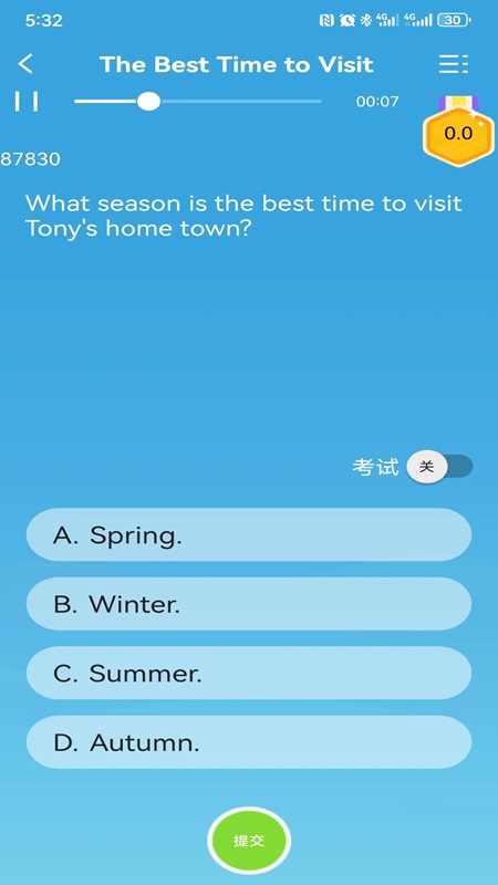 资源库包含教材同步内容、影视原声、考试真题等多媒体材料。十六种听力练习模式涵盖听句选词到听写句子等多样化训练方式。学习社区功能允许全球语言学习者交流心得,定期举办语言挑战活动以保持学习动力。智能推荐机制会根据薄弱项自动推送针对性练习,练习结束后系统会进行精准打分并显示参考答案,帮助清晰了解能力状况。