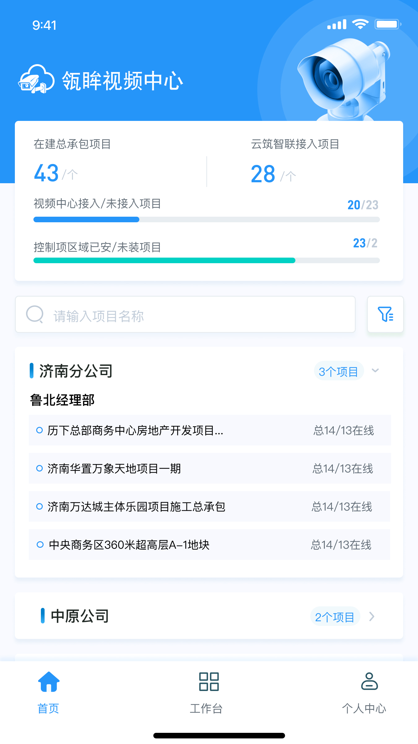 瓴眸视频中心是一款面向建筑施工领域的智能视频管理工具,将工程项目现场的各类视频监控资源进行统一接入、管理和智能化应用,从而为项目管理提供坚实的可视化基础。