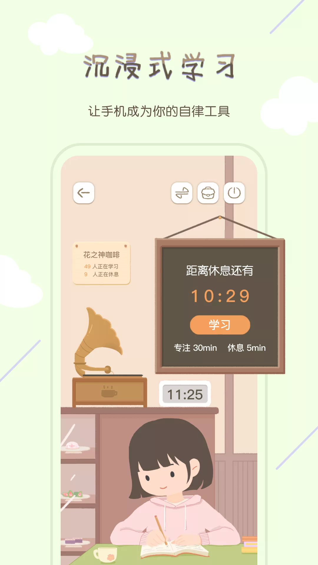 全球化的场景库收录了超过20座城市的特色咖啡馆,每个场景都融入了当地的文化特色,极大地满足了不同的审美与情境偏好。从热闹的吧台到安静的角落,座位选择也十分灵活。特色还在于其趣味化与游戏化的激励体系。通过完成专注任务获得金币与经验值,可以解锁更多场景,这种即时正反馈机制能持续激发学习动力。精美的学习结束卡片与多国语言鼓励,进一步增强了成就感。应用也注重个性化,智能算法可根据学习习惯推荐个性化的学习方案与时长安排,支持定制专属的学习计划。
