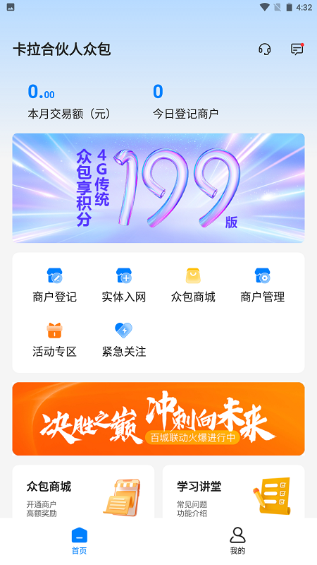 主要模块包括商户登记与实体入网,支持在线快速完成商户信息的提交与审核,简化传统入驻流程。众包商城提供了丰富的商品资源,方便在业务拓展过程中进行采购或礼品兑换。商户管理功能使合伙人能够清晰查看所关联商户的展业数据与状态,实现可视化的团队与业绩管理。平台还设有专门的学习讲堂与知识库,持续提供行业动态、产品知识与市场策略等培训内容,助力能力提升。活动专区则定期推出各类营销与激励活动,为业务开展增添动力。