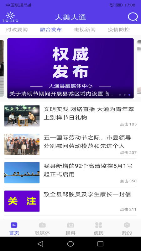 大通融媒是由大通县融媒体中心推出的官方手机客户端,作为一款集新闻资讯、政务办事、生活服务于一体的综合性平台,该应用实现了传统媒体与新兴媒体的深度融合。它通过新闻、电视、广播、图集、资讯、专题、直播、报料、投票等功能模块,为用户提供全方位的本地化服务,涵盖时政要闻、民生小事、视听节目等内容,同时支持智能化推送,根据用户阅读习惯精准推荐新闻,极大提升了信息获取效率。