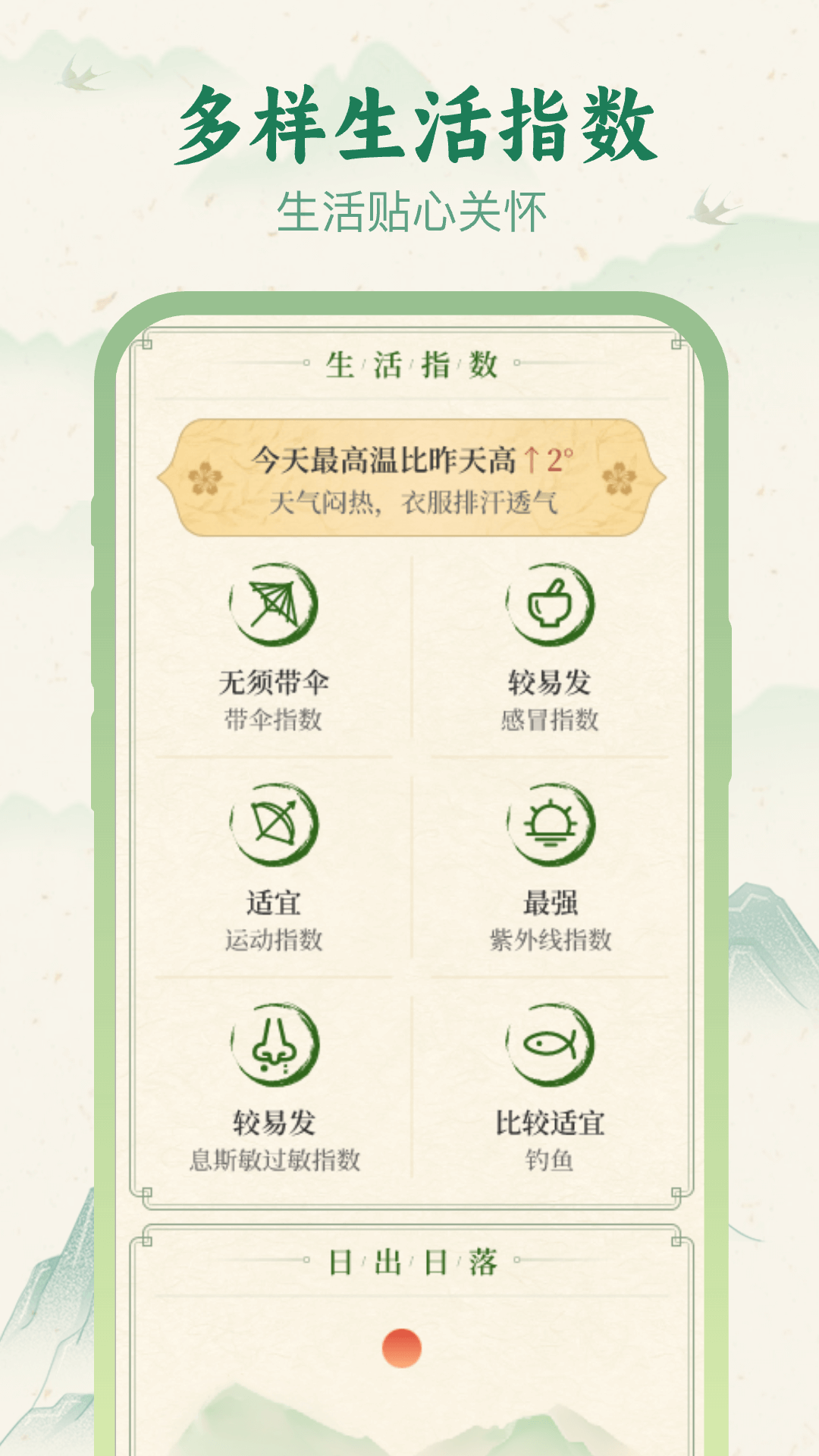 它将传统与现代完美结合,既提供了准确的天气信息,又传承了中国传统文化。对于喜欢传统文化的人来说,软件中的十二时辰元素会让他们爱不释手;对于注重生活品质的人来说,软件的个性化服务和实用的小提示能帮助他们更好地安排生活。软件的界面设计精美,操作简单,适合各个年龄段的用户。无论是日常出行还是旅游规划,它都能成为你的好帮手。相信这款软件会不断优化和完善,为你带来更多优质的天气服务。