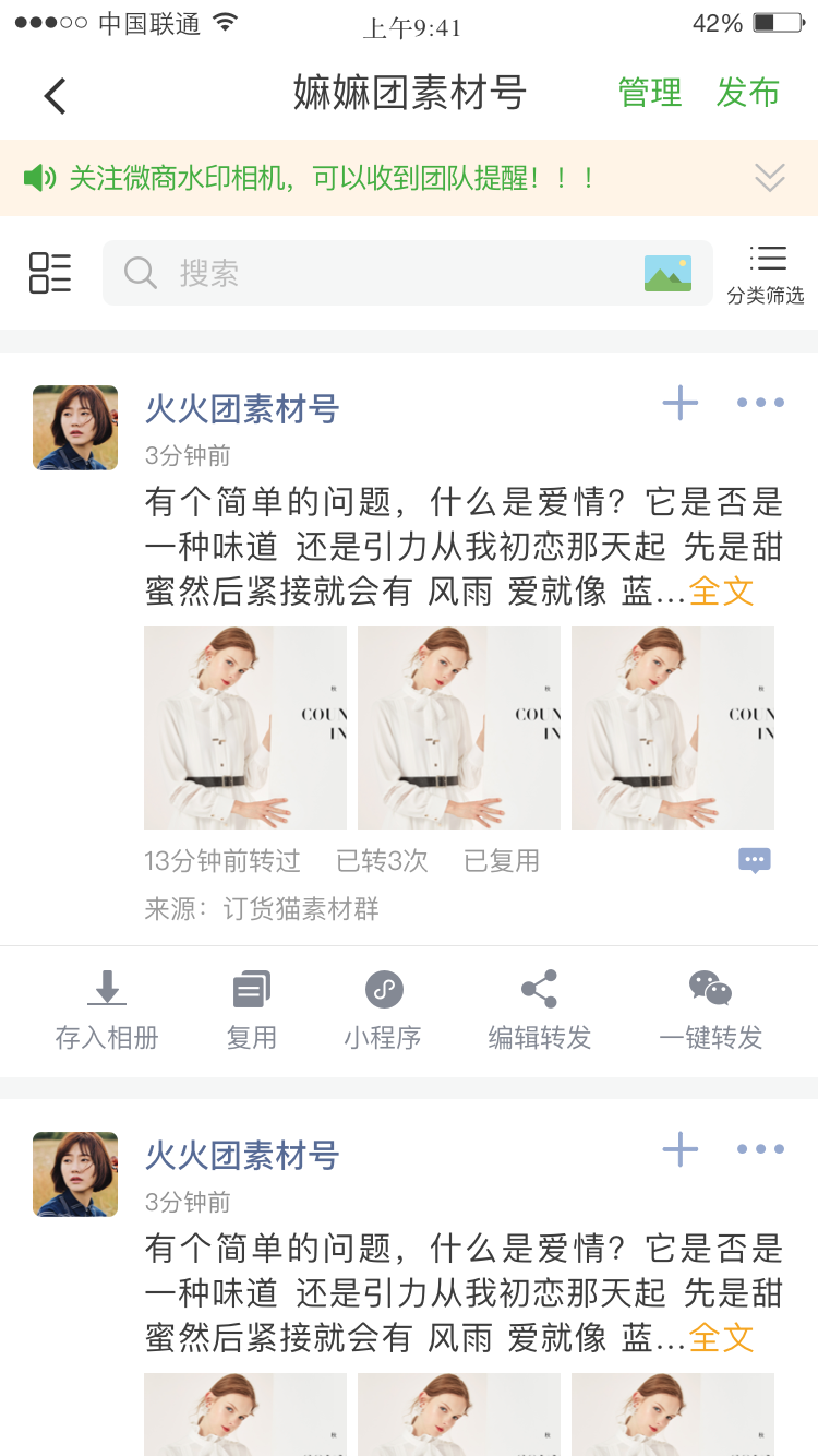 该应用主要服务于需要高效管理并分发营销素材的场景。团队创建者可以建立专属素材库,上传高清的图片、视频、文案等素材并永久存储。通过邀请代理商、门店或员工加入团队,即可实现素材的实时共享与统一管理。功能体系涵盖了从素材创建到分发的全链路:支持素材的常规与定时发布;提供强大的分类、标签及搜索功能以便快速定位;支持管理员与小编等多层级权限设置,便于团队管理;成员可将素材一键转发至朋友圈或私信,极大地提升了内容传播的效率和执行力。