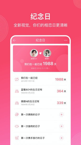 情侣们可以共同撰写专属日记,用文字、图片或视频记下每个心动瞬间;还有一对一的私密聊天室,支持语音、视频和文字交流,让对话更随心所欲。系统还会定期发布有趣的互动小任务,比如一起看场电影或完成某个小挑战,达成后收获积分和惊喜奖励,让每一天都充满新鲜感。内置的多种小游戏,如拼图或问答,让双方在娱乐中培养更多默契。智能纪念日管家会贴心地提醒每个重要时刻,如生日或初次相遇的日子,让仪式感满满。