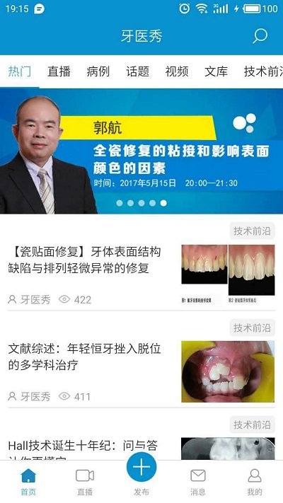 打开应用,你会看到一个设计时尚、布局清晰的界面。首页将内容直观地分为热门、直播、病例、话题、视频和文库等几大板块,方便你快速找到所需。如果想学习,可以进入直播板块,那里不仅有预告和正在进行的专家课程,还有完整的回放可供随时观看,名师会在线上答疑解惑。病例板块则汇集了大量同行上传的真实案例,通过阅读和讨论,不仅能结识益友,还能向名家寻求诊疗思路。对于热爱钻研的牙医,视频板块提供了丰富的牙医学术视频,而文库板块则像一个随身图书馆,收藏了如口腔种植学等多位名家的典藏书籍,可以免费在线阅读。你还可以随时发表自己的牙科作品或动态,获取同道的点评与指点,形成一个积极的互动循环。
